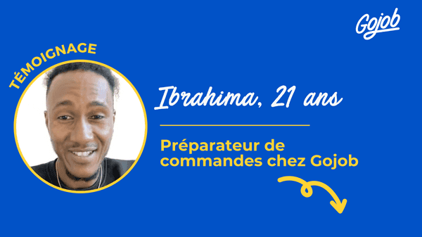 Ibrahima, 21 ans et préparateur de commande chez Gojob depuis quelques mois vous partage en vidéo son expérience. Découvrez son avis et son expérience avec Gojob mais aussi son projet de permis de conduire.